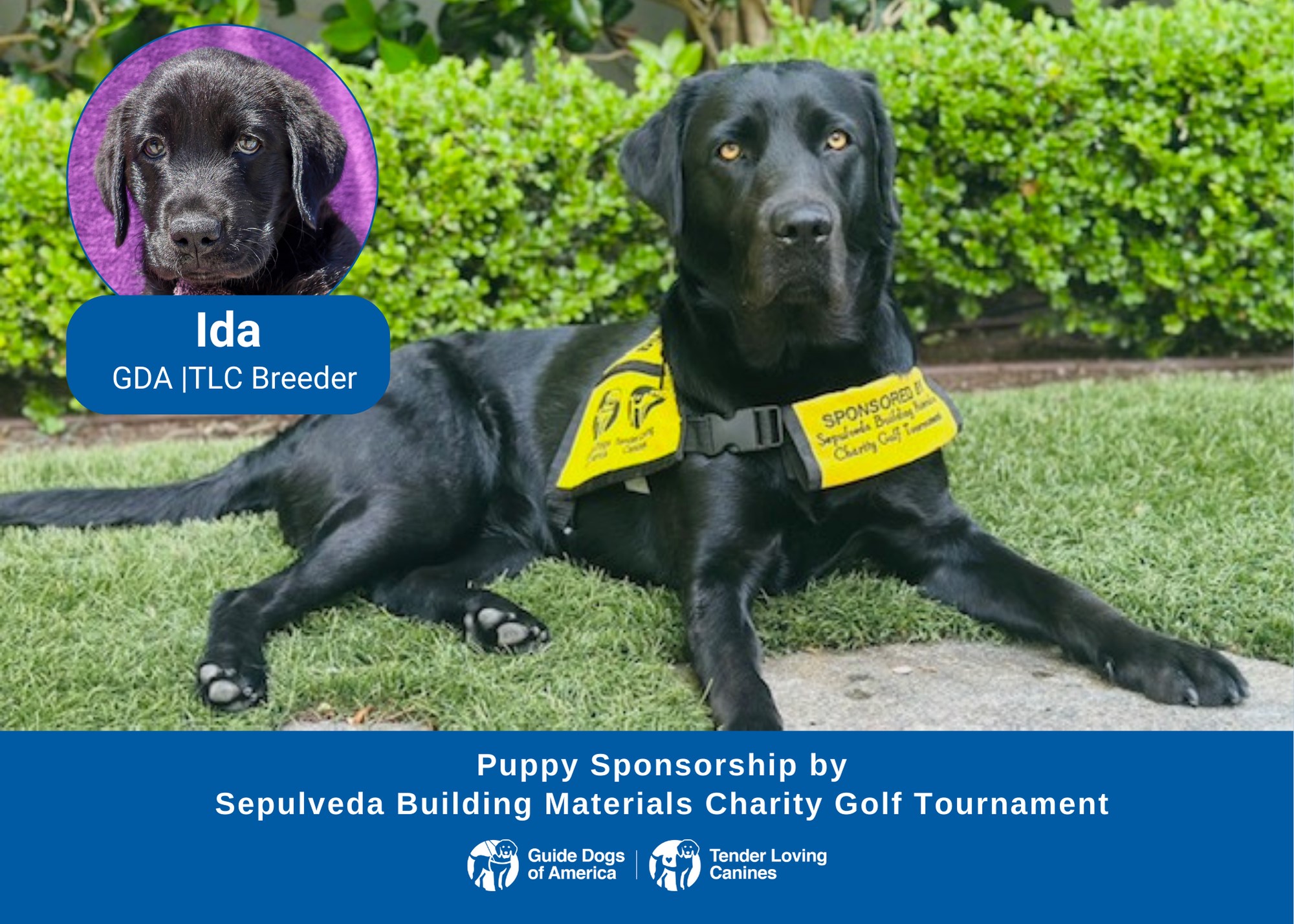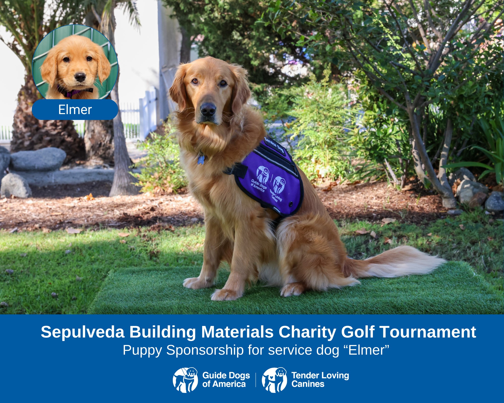 Generous sponsor donations and player participation at the Sepulveda Building Materials Charity Golf Tournament sponsor Guide Dogs of America puppies and provide training, equipment and supplies for graduates and their guide dogs. Here are updates on the puppies-in-training.