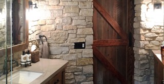 This golden tan colored flagstone consists of large hand selected pieces of sandstone that are sorted to 1"-2" thick and are fairly flat with some natural clefting on the surface (shown here with tinted mortar). It is also available in an 1-1/4" minus thin material and can be special ordered in cut tiles ranging in size from 12"X 12" up to 24"X 24".